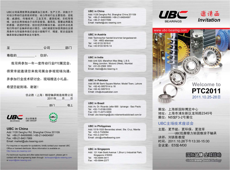 UBC將參加PTC ASIA 2011亞洲國(guó)際動(dòng)力傳動(dòng)與控制技術(shù)展覽會(huì)。